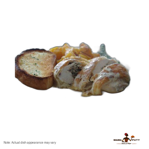 Pastry stuffed with veggies, chicken, and potatoes filling.